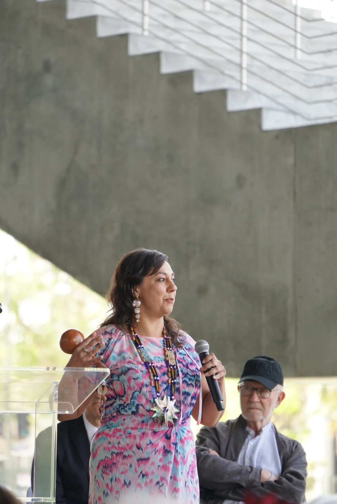 As the ceremony was concluding, Megan Dorame and Mercedes Dorame gave the new building a Tongva blessing and spoke beautifully expressing gratitude to the creator, earth, sun, water, trees, moon, and all the teachers and ancestors. The blessing and Michael Govan’s welcoming all those who’ve immigrated from the Americas made me feel welcomed at the ceremony and museum by those whose land it was and those who now manage it, though disparities in power resulting from conquest must be acknowledged.