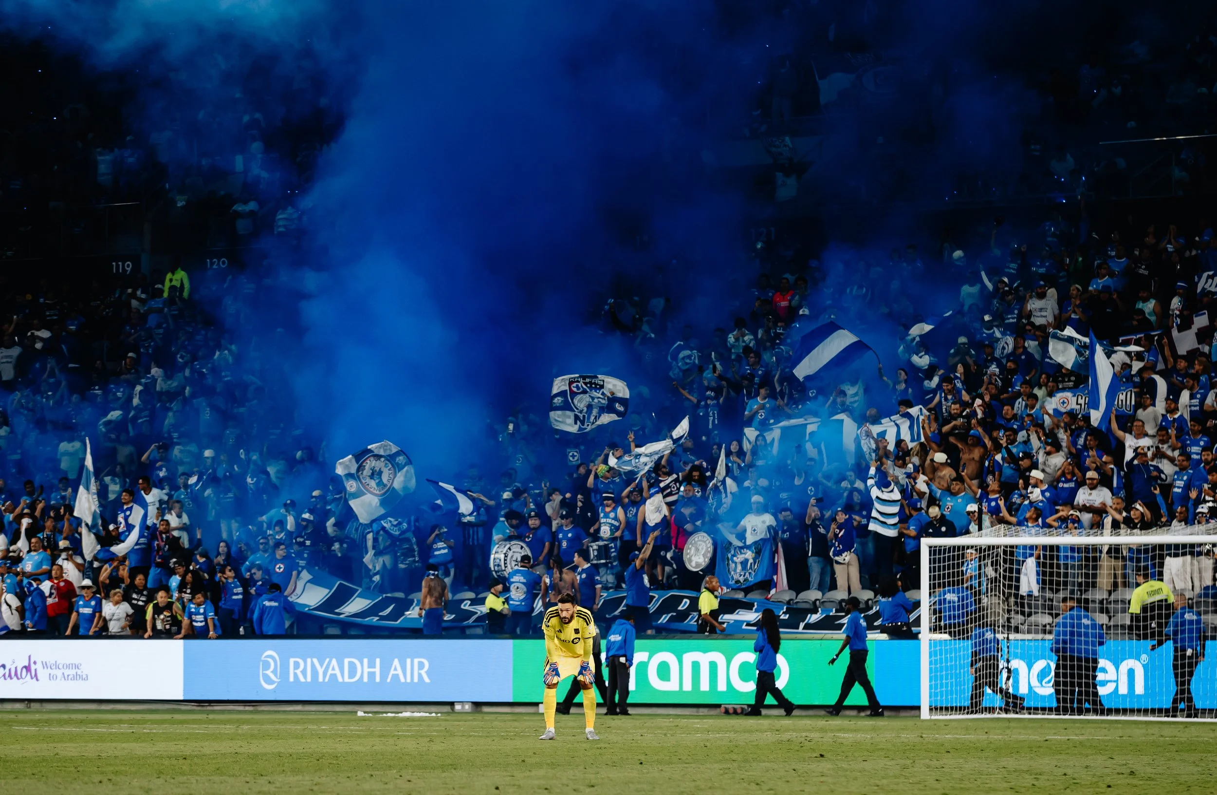 LAFC goalkeeper Hugo LLoris with Cruz Azul fans behind him